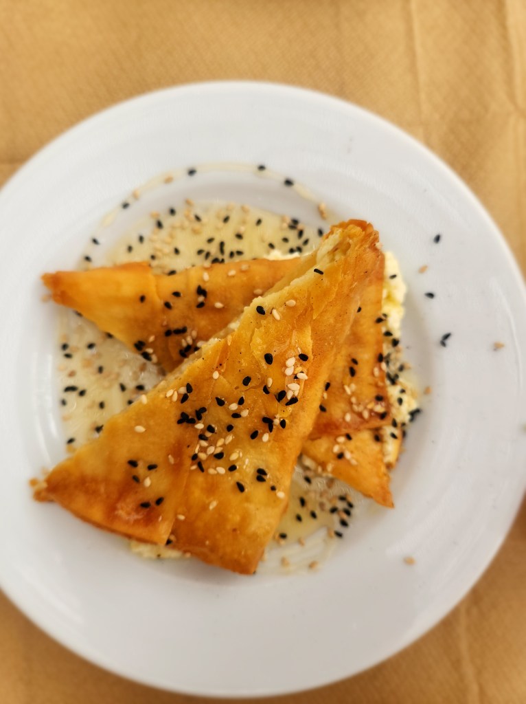 Tiropita…feta cheese pie. This is great as an appetizer or a snack with cocktails during aperitivo (happy hour). Fresh feta baked into a phyllo crust, drizzled with fresh honey and served warm. Pair it with your favorite wine, a glass of ouzo, or an aperol spritz and you have found a delicious way to enjoy the afternoon. Spinach and cheese pie is also very popular, quick and savory lunch.