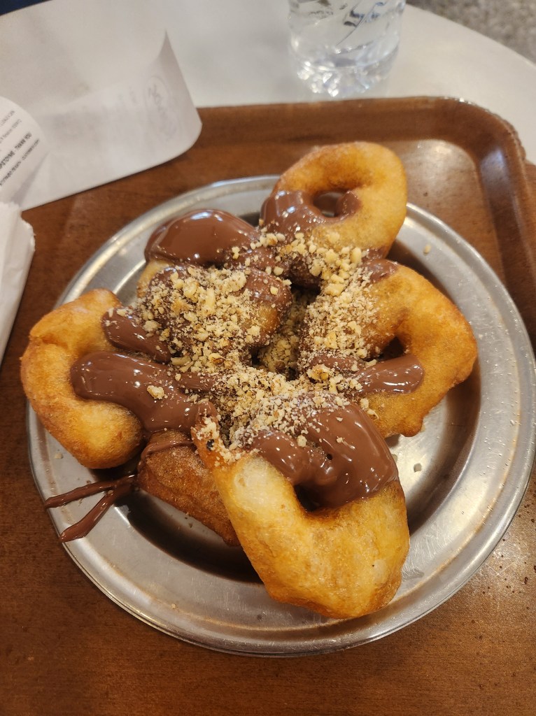 Loukoumades….Greek donuts. They are made with a simple dough, fried until they are golden, crispy and delicious. If that isn’t enough, then they add toppings, like fresh honey, melted nutella, or just simply sprinkled with cinnamon. Traditionally these have been saved for special occasions like weddings and holidays, but now all over Athens you can find little shops selling their fresh loukoumades. Take a friend and stop in for an afternoon snack, their servings of 4-6 donuts are perfect for sharing….and that whole plate….only 3 euros!!!!